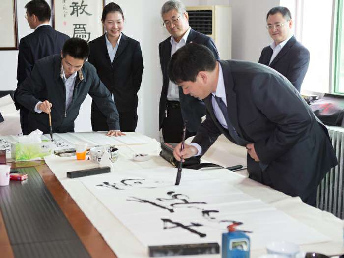 为弘扬传统文化,丰富员工业余生活,5月6日上午,九州网页版登录入口-九州(中国)举办了首届书画艺术学习交流活动。本次活动邀请了中国书法家协会会员孟云飞博士、中国书法家协会理事张铜彦先生、中国书法家协会编辑出版委员会副主任王荣生教授、人民艺术家协会理事于瑛先生等国内知名书画大师,各位书画大师在活动现场进行了艺术创作表演,挥毫泼墨,交流技艺,为九州网页版登录入口-九州(中国)留下了数十副墨宝,还对部分员工的书画作品进行了悉心指导。公司员工现场欣赏了书画大师的艺术创作,并聆听了有关书画艺术鉴赏知识的介绍,部分员工还在活动现场进行创作,听取书画大师的讲解示范和点评。