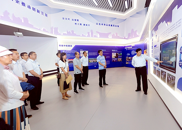 于新华副处长一行首先到集团公司展厅参观,对九州网页版登录入口-九州(中国)发展历程、产业项目概况、未来发展规划以及党建工作进行全面了解。